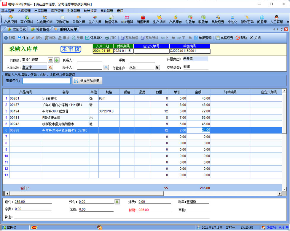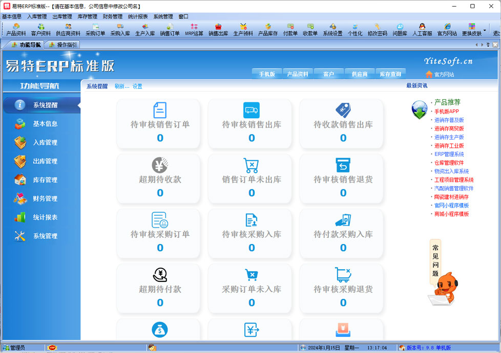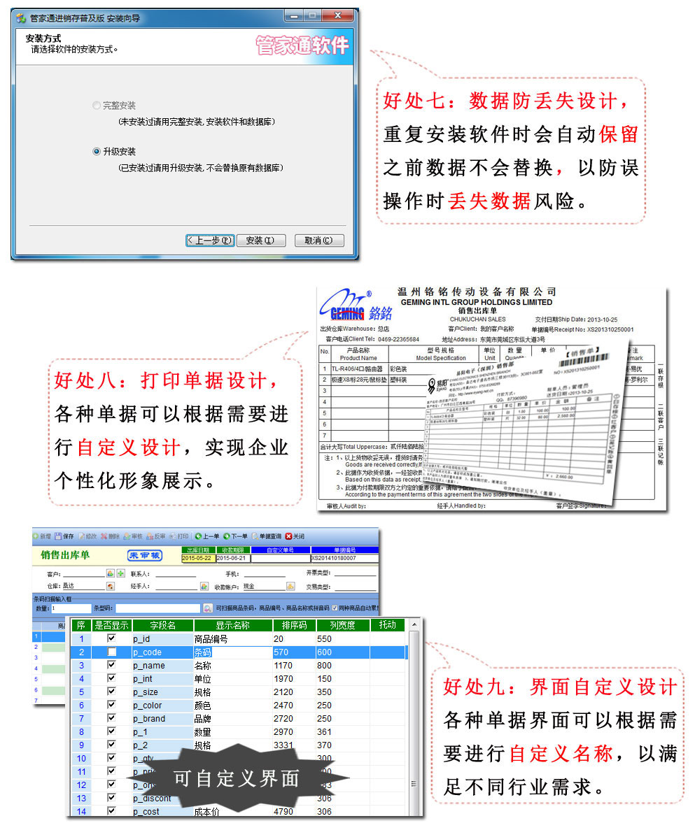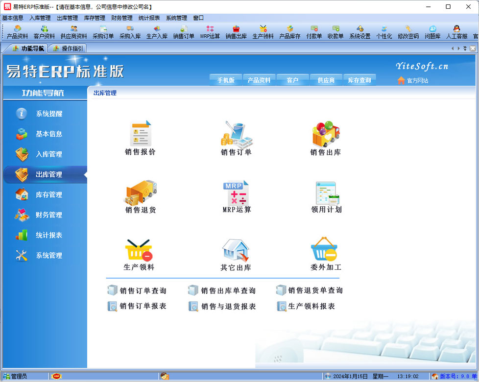 易特ERP標(biāo)準(zhǔn)版是一款專業(yè)的生產(chǎn)制造企業(yè)的ERP管理軟件,可對(duì)成品的BOM設(shè)置,客戶訂單下達(dá)后根據(jù)BOM進(jìn)行MRP物料需求運(yùn)算。其中包含產(chǎn)品銷售管理系統(tǒng) ,庫存管理系統(tǒng)(倉庫管理系統(tǒng)),財(cái)務(wù)和報(bào)表系統(tǒng)等子模塊。軟件界面設(shè)計(jì)簡(jiǎn)潔,美觀,其人性化的軟件流程,使普通用戶不需培訓(xùn)也能很快掌握軟件操作使用方法,上手極易。強(qiáng)大報(bào)表與集成查詢功能是本軟件的最大特色,所有功能在用戶需要的使用地方自然體現(xiàn),不用打開多個(gè)窗口重復(fù)查詢。易特進(jìn)銷存軟件廣泛適用于企業(yè),商貿(mào)公司,個(gè)體門店等用于商業(yè)銷售管理, 庫存管理,財(cái)務(wù)管理等,客戶管理,員工管理等場(chǎng)合,是您企業(yè)進(jìn)行信息化管理的強(qiáng)大工具。 入庫管理:進(jìn)行產(chǎn)品采購入庫,采購?fù)素,采購入庫,委外加工入庫?/p> 出庫管理:銷售訂單,銷售出庫,客戶退貨,生產(chǎn)計(jì)劃,MRP物料需求運(yùn)算,委外加工發(fā)料。 庫存管理:包括庫存之間貨品調(diào)拔,庫存報(bào)損、報(bào)溢,庫存盤點(diǎn)功能。 財(cái)務(wù)管理:預(yù)付款、預(yù)收款,應(yīng)收應(yīng)付款,收入支出,,供應(yīng)商往來帳務(wù),供應(yīng)商付款,客戶往來帳務(wù),客戶付款 。 統(tǒng)計(jì)報(bào)表:完整的統(tǒng)計(jì)查詢功能,每張單據(jù)每次業(yè)務(wù)金額都可以清楚的反映。 權(quán)限管理:可添加刪除系統(tǒng)操作員帳號(hào),強(qiáng)大的權(quán)限控制,可以設(shè)置某用戶對(duì)某窗口某個(gè)按鈕的權(quán)限。 打印設(shè)計(jì):可對(duì)系統(tǒng)內(nèi)每個(gè)單據(jù)進(jìn)行打印的格式設(shè)計(jì),可以導(dǎo)出,導(dǎo)入,每個(gè)操作員可設(shè)計(jì)自己的打印格式。 界面設(shè)計(jì):系統(tǒng)窗口界面名稱可以自定義設(shè)計(jì),表格的顯示順序,寬度,是否顯示等,每個(gè)操作員可以設(shè)計(jì)自己的界面。 系統(tǒng)設(shè)置:可以靈活設(shè)置系統(tǒng)小數(shù)位數(shù),可選0-6位,讓帳務(wù)更精確,可對(duì)以往數(shù)據(jù)進(jìn)行選擇性的清除,以便系統(tǒng)初始化。 數(shù)據(jù)備份:可隨時(shí)對(duì)系統(tǒng)數(shù)據(jù)庫進(jìn)行安全備份,以防數(shù)據(jù)丟失。 |