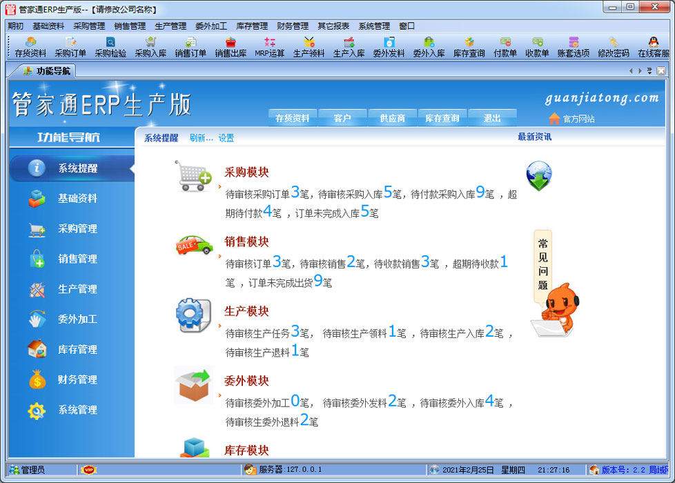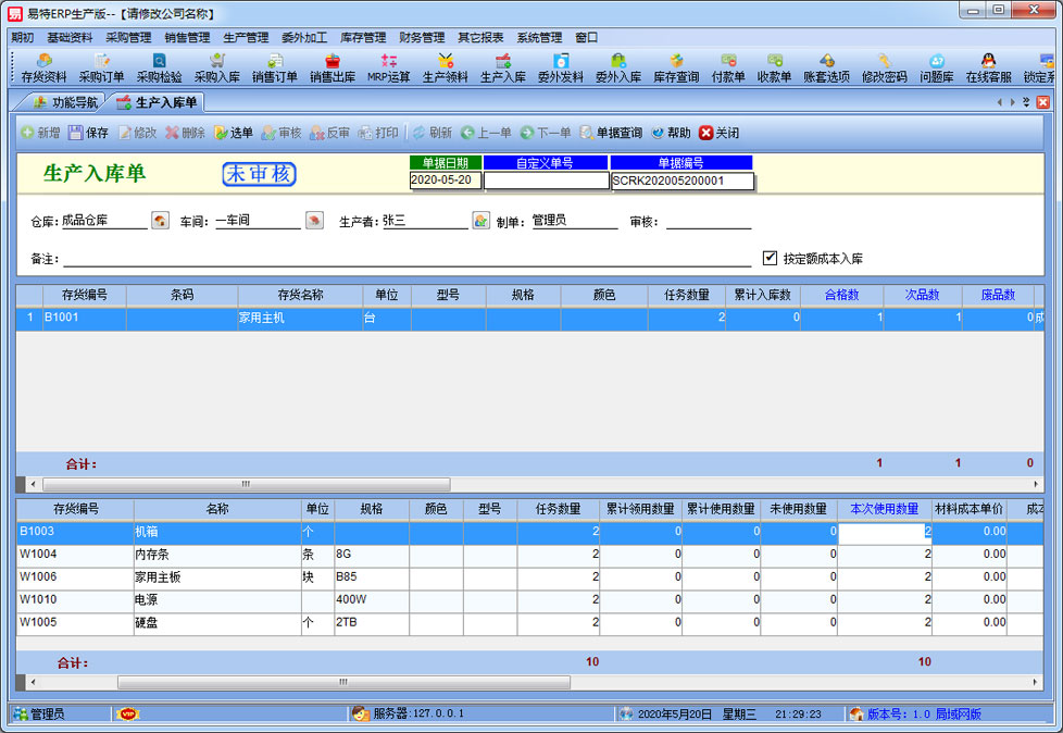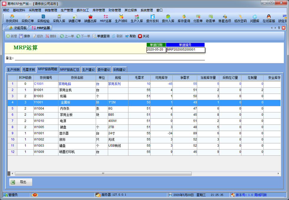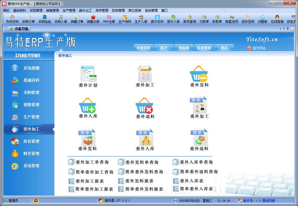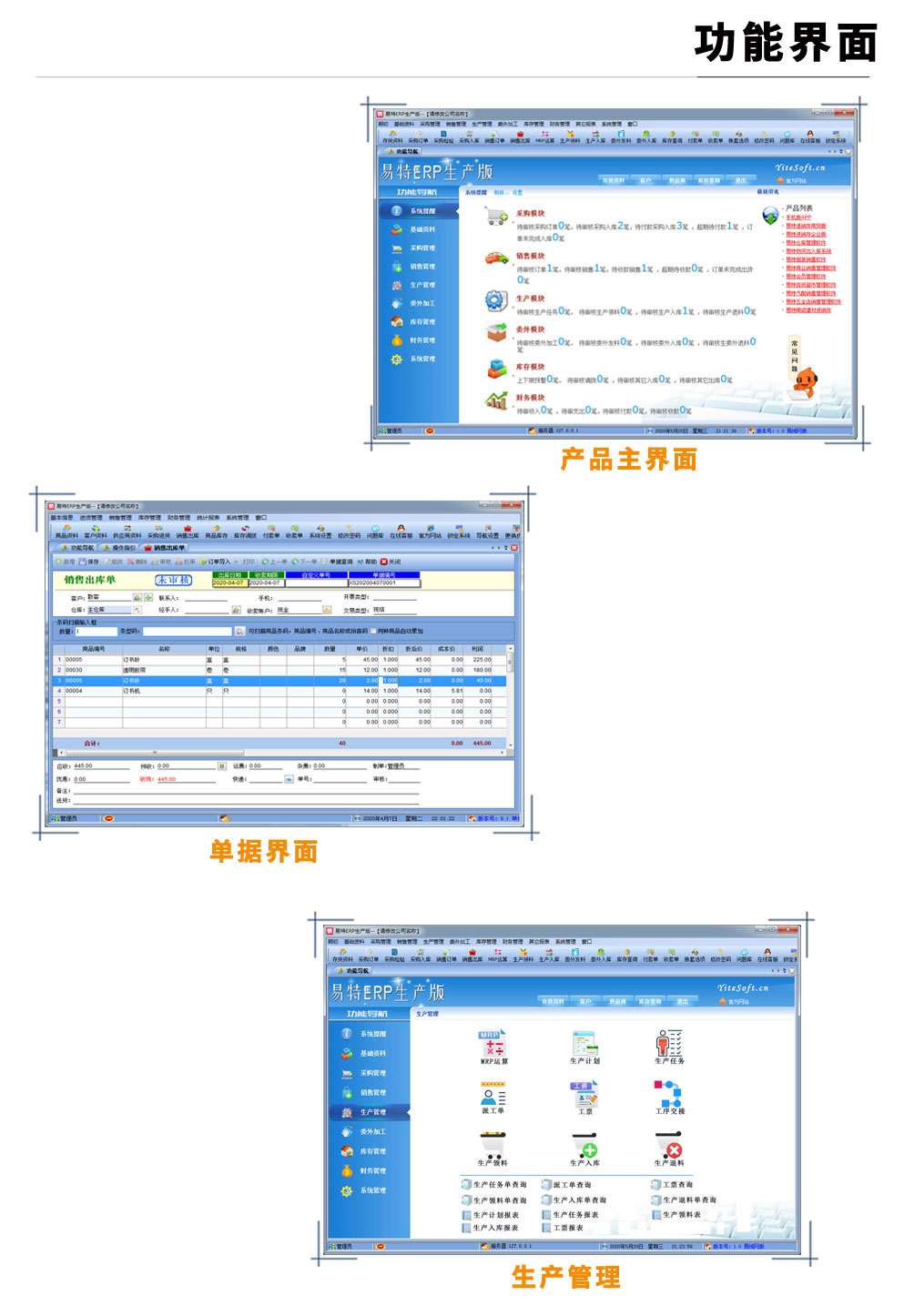 易特ERP生產(chǎn)版是一款專業(yè)的生產(chǎn)企業(yè)管理系統(tǒng),其中包含采購系統(tǒng),自制生產(chǎn)系統(tǒng),委外加工管理系統(tǒng),庫存管理系統(tǒng)(倉庫管理系統(tǒng)),財(cái)務(wù)和報(bào)表系統(tǒng)等子模塊。軟件界面設(shè)計(jì)簡(jiǎn)潔,美觀,其人性化的軟件流程,使普通用戶不需培訓(xùn)也能很快掌握軟件操作使用方法,上手極易。 采購管理:進(jìn)行存貨的采購訂單,采購檢驗(yàn),估價(jià)入庫,采購入庫,采購?fù)素浀裙芾怼?/p> 銷售管理:銷售報(bào)價(jià),銷售訂單,銷售出庫,銷售退貨等管理。 生產(chǎn)管理:MRP運(yùn)算,生產(chǎn)計(jì)劃,生產(chǎn)任務(wù),派工,工序交接,生產(chǎn)領(lǐng)料,生產(chǎn)入庫等管理 委外加工:委外計(jì)劃,委外發(fā)料,委外入庫,委外退料等管理。 庫存管理:包括庫存之間調(diào)拔,庫存報(bào)損、報(bào)溢,庫存盤點(diǎn)功能。 財(cái)務(wù)管理:預(yù)付款、預(yù)收款,應(yīng)收應(yīng)付款,收入支出,發(fā)票管理。 權(quán)限管理:可添加刪除系統(tǒng)操作員帳號(hào),強(qiáng)大的權(quán)限控制,可以設(shè)置某用戶對(duì)某窗口某個(gè)按鈕的權(quán)限。 打印設(shè)計(jì):可對(duì)系統(tǒng)內(nèi)每個(gè)單據(jù)進(jìn)行打印的格式設(shè)計(jì),可以導(dǎo)出,導(dǎo)入,每個(gè)操作員可設(shè)計(jì)自己的打印格式。 界面設(shè)計(jì):系統(tǒng)窗口界面名稱可以自定義設(shè)計(jì),表格的顯示順序,寬度,是否顯示等,每個(gè)操作員可以設(shè)計(jì)自己的界面。 資料授權(quán):可對(duì)系統(tǒng)中倉庫,供應(yīng)商,客戶,存貨資料進(jìn)行分別授權(quán)給指定的操作員。 賬套設(shè)置:可根據(jù)需要對(duì)系統(tǒng)的參數(shù)進(jìn)行配置,實(shí)現(xiàn)個(gè)性化的需求。 |