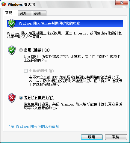 打開--開始菜單---設(shè)置----控制面板,里面找到“Windows防火墻”打開如下圖所示,一般情況下用路由器上網(wǎng)的則不需要此防火墻,關(guān)閉即可