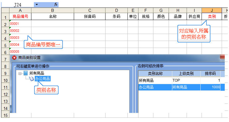 注意:導(dǎo)入前請先在系統(tǒng)里建立好商品類別,分店,導(dǎo)入資料時即使沒有期初庫存也必須指定分店編號,否則無法導(dǎo)入,不輸入期初庫存時,將會自動以0庫存顯示在該分店下,以便可以0庫存出庫。