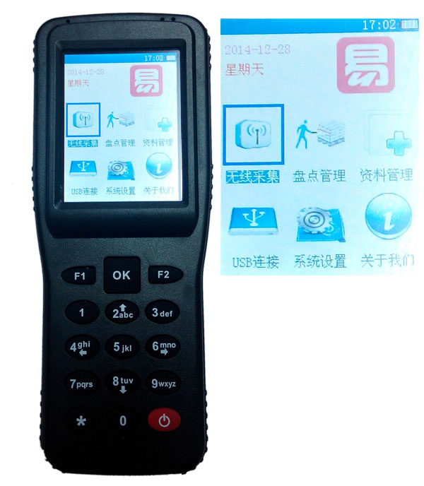 由于盤點(diǎn)機(jī)的屏在拍射時(shí)會(huì)閃光所以效果不是很清晰(親可以拿手機(jī)拍下電腦顯示器的屏效果一樣),實(shí)際的真機(jī)顯示屏?xí)褪謾C(jī)一樣能顯示很小的字體,下圖為盤點(diǎn)機(jī)的外觀圖