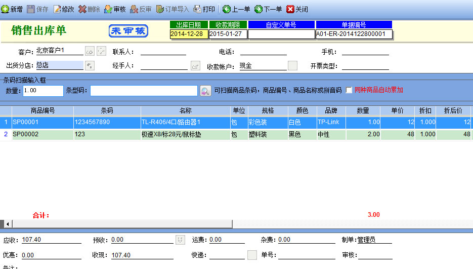 一個(gè)客戶銷售完成后,可按F2一直退回最初選客戶介面,重新選擇后則生成新的一張銷售單