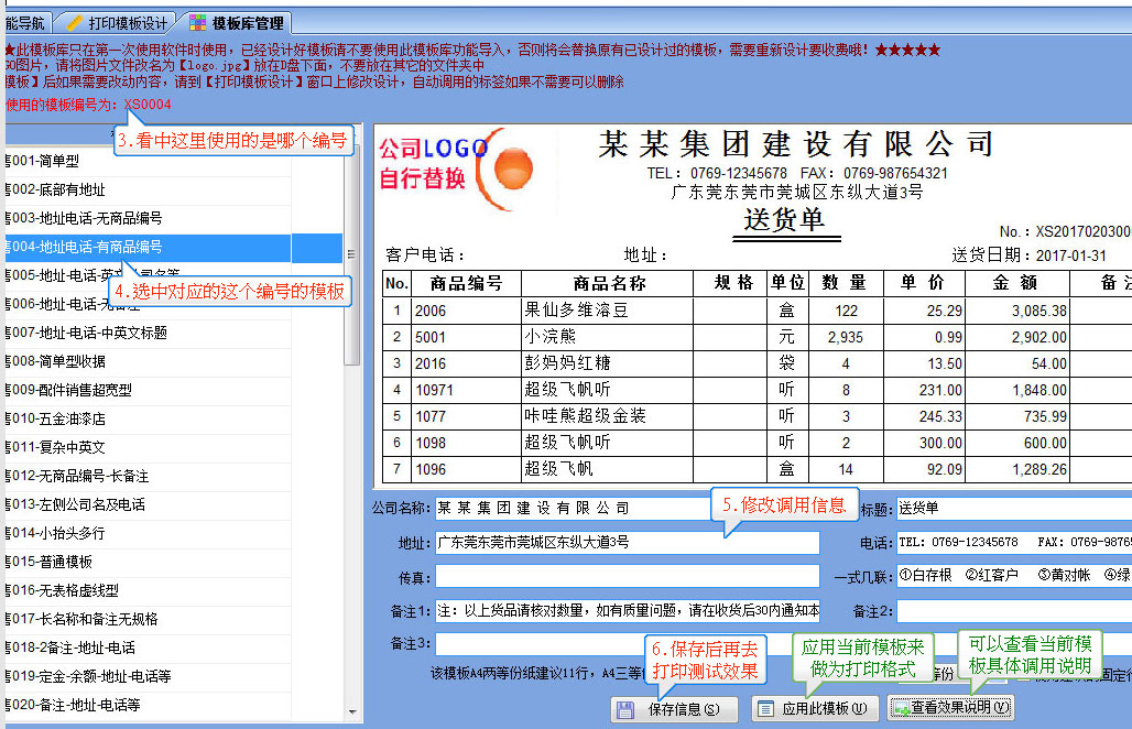 最新版調(diào)用了模板庫的功能,可以直接引用系統(tǒng)中設(shè)計(jì)好的模板并設(shè)置電話等信息(已經(jīng)設(shè)計(jì)好的打印格式請(qǐng)不要應(yīng)用此模板,將會(huì)替換原來的設(shè)計(jì),此功能只針對(duì)新購買的軟件第一次設(shè)計(jì)打印時(shí)使用)