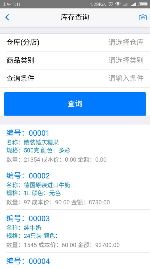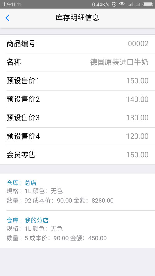 庫存信息可根據(jù)設(shè)置的權(quán)限是否顯示售價,成本價等。