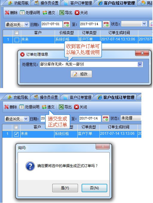 啟用了客戶自助下訂單功能后,【銷售管理】---【客戶訂單管理】窗口上會多出【在線訂單】功能。
