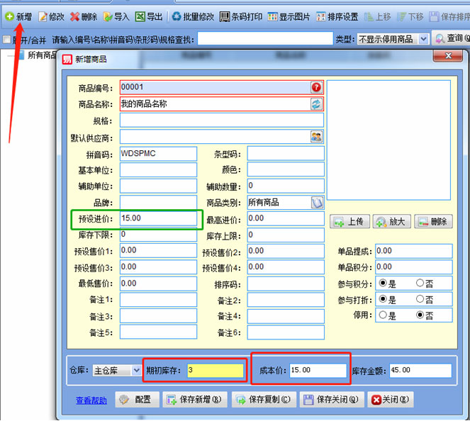 注意:預(yù)設(shè)進(jìn)價(jià)不等于最終的成本價(jià),預(yù)設(shè)進(jìn)價(jià)只是方便在采購(gòu)進(jìn)貨單上調(diào)用,如預(yù)設(shè)進(jìn)價(jià)輸入的15元,采購(gòu)進(jìn)貨時(shí)輸入16元,則會(huì)按16元來(lái)計(jì)算。