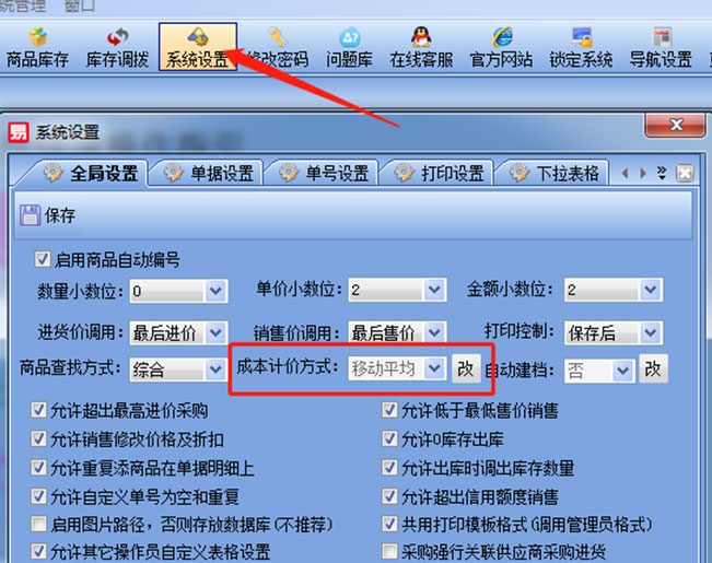 系統(tǒng)設(shè)置里面有一個(gè)成本價(jià)的計(jì)價(jià)方式。