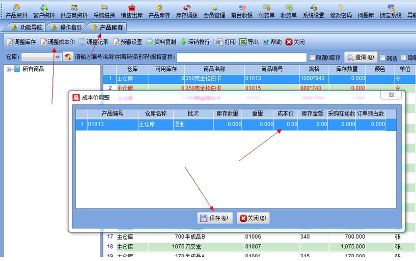 商品庫(kù)存窗口左上角有一個(gè)調(diào)整成本價(jià)的按鈕,選中需要調(diào)整的商品可以手動(dòng)調(diào)整成本價(jià)。