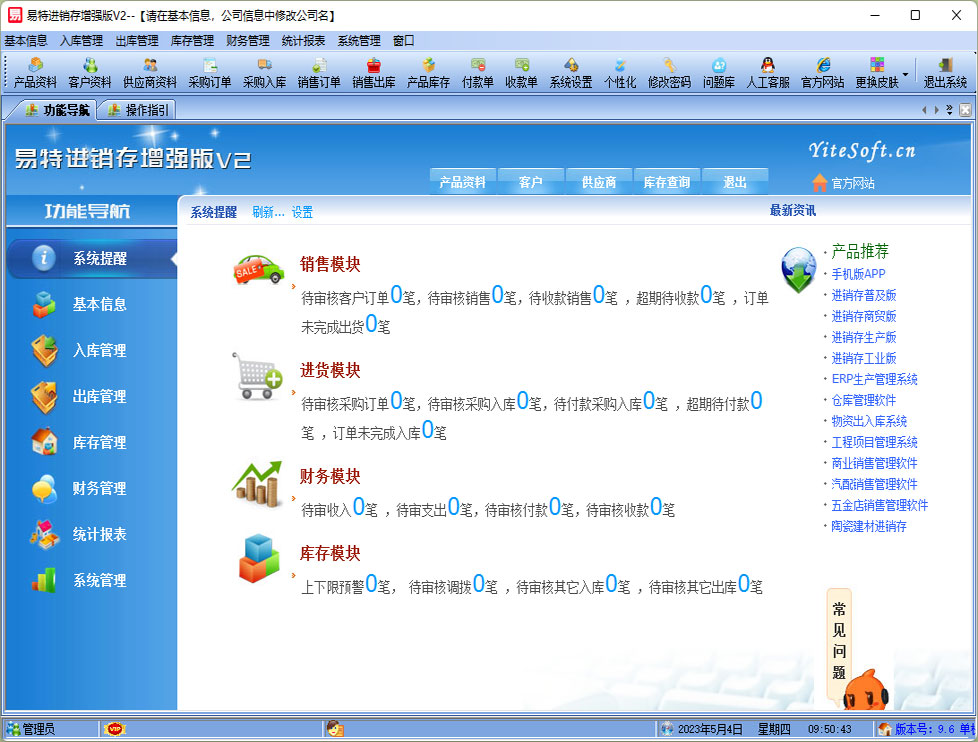 易特進(jìn)銷存增強(qiáng)版是一款專業(yè)的多數(shù)量計(jì)量單位的進(jìn)銷存軟件,針對有多計(jì)量數(shù)量管理需求的行業(yè)而設(shè)計(jì)開發(fā),其中包含商品銷售管理系統(tǒng) ,庫存管理系統(tǒng)(倉庫管理系統(tǒng)),財(cái)務(wù)和報(bào)表系統(tǒng)等子模塊。軟件界面設(shè)計(jì)簡潔,美觀,其人性化的軟件流程,使普通用戶不需培訓(xùn)也能很快掌握軟件操作使用方法,上手極易。強(qiáng)大報(bào)表與集成查詢功能是本軟件的最大特色,所有功能在用戶需要的使用地方自然體現(xiàn),不用打開多個(gè)窗口重復(fù)查詢。易特進(jìn)銷存軟件廣泛適用于企業(yè),商貿(mào)公司,個(gè)體門店等用于商業(yè)銷售管理, 庫存管理,財(cái)務(wù)管理等,客戶管理,員工管理等場合,是您企業(yè)進(jìn)行信息化管理的強(qiáng)大工具。 基礎(chǔ)數(shù)據(jù):產(chǎn)品信息,供應(yīng)商,客戶,商品分類,倉庫,銀行,計(jì)量單位等基本信息的設(shè)置。 入庫管理:采購訂單,進(jìn)行產(chǎn)品采購入庫,采購?fù)素,進(jìn)貨單據(jù)和退貨單據(jù)查詢,供應(yīng)商往來帳務(wù),供應(yīng)商付款。 出庫管理:銷售訂單,銷售出貨,客戶退貨,銷售單據(jù)和客戶退貨查詢,客戶往來帳務(wù),客戶付款。 庫存管理:包括庫存之間貨品調(diào)拔,庫存報(bào)損、報(bào)溢,庫存盤點(diǎn)功能。 統(tǒng)計(jì)報(bào)表:完整的統(tǒng)計(jì)查詢功能,每張單據(jù)每次業(yè)務(wù)金額都可以清楚的反映。 權(quán)限管理:可添加刪除系統(tǒng)操作員帳號,強(qiáng)大的權(quán)限控制,可以設(shè)置某用戶對某窗口某個(gè)按鈕的權(quán)限。 打印設(shè)計(jì):可對系統(tǒng)內(nèi)每個(gè)單據(jù)進(jìn)行打印的格式設(shè)計(jì),可以導(dǎo)出,導(dǎo)入,每個(gè)操作員可設(shè)計(jì)自己的打印格式。 界面設(shè)計(jì):系統(tǒng)窗口界面名稱可以自定義設(shè)計(jì),表格的顯示順序,寬度,是否顯示等,每個(gè)操作員可以設(shè)計(jì)自己的界面。 系統(tǒng)設(shè)置:可以靈活設(shè)置系統(tǒng)小數(shù)位數(shù),可選0-6位,讓帳務(wù)更精確,可對以往數(shù)據(jù)進(jìn)行選擇性的清除,以便系統(tǒng)初始化。 數(shù)據(jù)備份:可隨時(shí)對系統(tǒng)數(shù)據(jù)庫進(jìn)行安全備份,以防數(shù)據(jù)丟失。 |