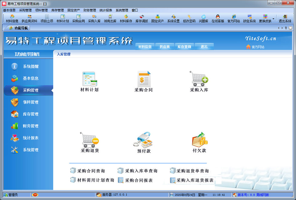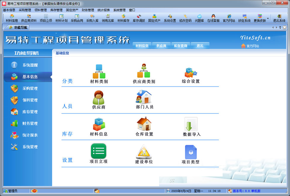 | 易特工程項(xiàng)目管理系統(tǒng)是一款專業(yè)的針對(duì)項(xiàng)目工程企業(yè),建筑施工,工程承包的材料庫(kù)存管理,其中包含庫(kù)存管理系統(tǒng)(倉(cāng)庫(kù)管理系統(tǒng)),報(bào)表系統(tǒng)等子模塊。軟件界面設(shè)計(jì)簡(jiǎn)潔,美觀,其人性化的軟件流程,使普通用戶不需培訓(xùn)也能很快掌握軟件操作使用方法,上手極易。