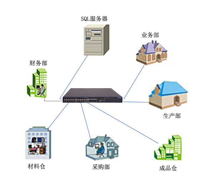 公司內(nèi)部購買一臺(tái)路由器/交換機(jī),將各個(gè)部門電腦連接在一起搭建成一個(gè)局域網(wǎng)。搭建局域網(wǎng)方法可參考相關(guān)資料。