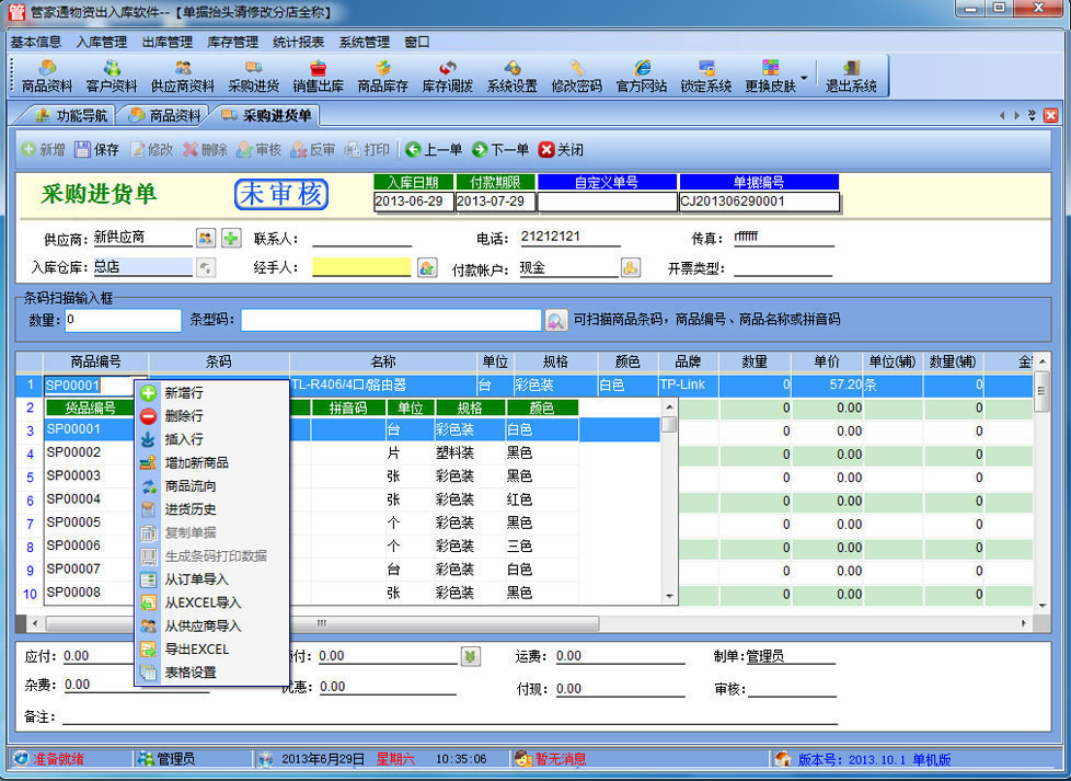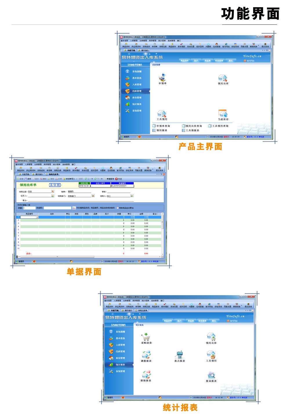 | 易特物資出入庫管理系統(tǒng)是一款專業(yè)的針對企業(yè)內(nèi)部單位庫存管理,針對內(nèi)部申領(lǐng),領(lǐng)用出庫,工具領(lǐng)用移交等,其中包含庫存管理系統(tǒng)(倉庫管理系統(tǒng)),報(bào)表系統(tǒng)等子模塊。軟件界面設(shè)計(jì)簡潔,美觀,其人性化的軟件流程,使普通用戶不需培訓(xùn)也能很快掌握軟件操作使用方法,上手極易。 功能簡介 基本信息:商品信息,供應(yīng)商,商品分類,倉庫等基本信息的設(shè)置。 入庫管理:進(jìn)行物資采購入庫,采購?fù)素,進(jìn)貨單據(jù)和退貨單據(jù)查詢。 出庫管理:申領(lǐng)管理,領(lǐng)用出庫,工具領(lǐng)用等管理。 庫存管理:包括庫存之間貨品調(diào)拔,庫存報(bào)損、報(bào)溢,庫存盤點(diǎn)功能。 統(tǒng)計(jì)報(bào)表:完整的統(tǒng)計(jì)查詢功能,每張單據(jù)每次業(yè)務(wù)金額都可以清楚的反映。 權(quán)限管理:可添加刪除系統(tǒng)操作員帳號,強(qiáng)大的權(quán)限控制,可以設(shè)置某用戶對某窗口某個(gè)按鈕的權(quán)限。 打印設(shè)計(jì):可對系統(tǒng)內(nèi)每個(gè)單據(jù)進(jìn)行打印的格式設(shè)計(jì),可以導(dǎo)出,導(dǎo)入,每個(gè)操作員可設(shè)計(jì)自己的打印格式。 界面設(shè)計(jì):系統(tǒng)窗口界面名稱可以自定義設(shè)計(jì),表格的顯示順序,寬度,是否顯示等,每個(gè)操作員可以設(shè)計(jì)自己的界面。 系統(tǒng)設(shè)置:可以靈活設(shè)置系統(tǒng)小數(shù)位數(shù),可選0-6位,讓帳務(wù)更精確,可對以往數(shù)據(jù)進(jìn)行選擇性的清除,以便系統(tǒng)初始化。 數(shù)據(jù)備份:可隨時(shí)對系統(tǒng)數(shù)據(jù)庫進(jìn)行安全備份,以防數(shù)據(jù)丟失。 |