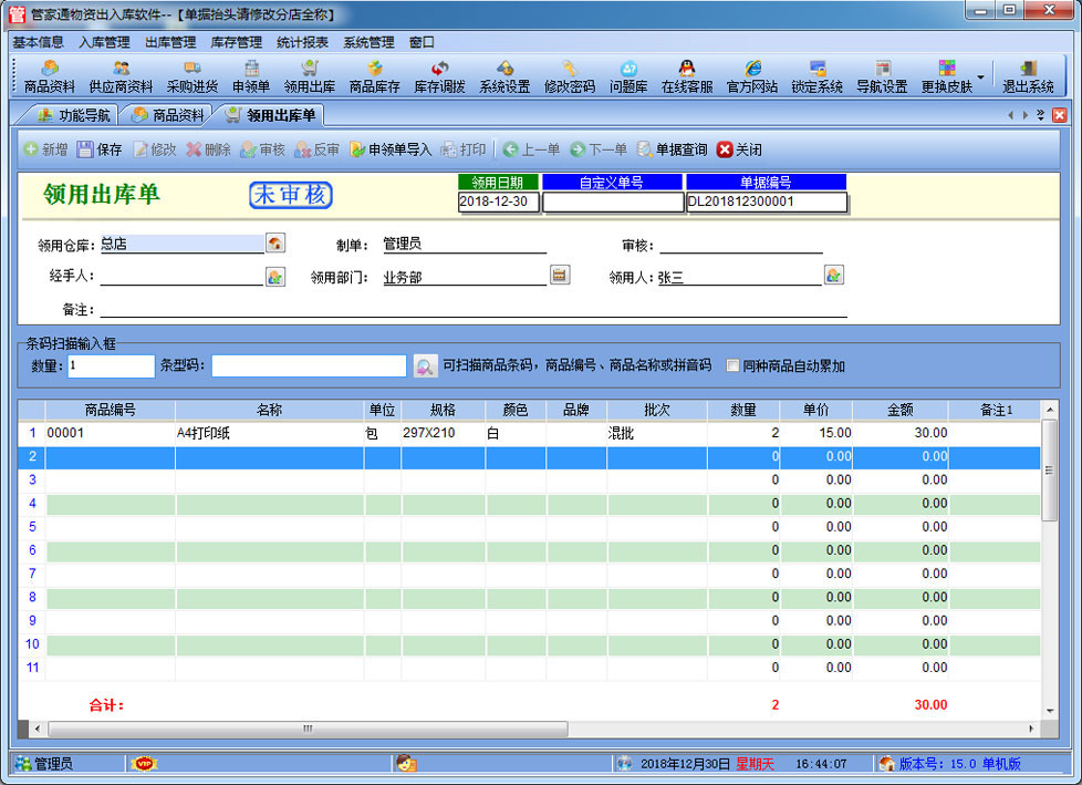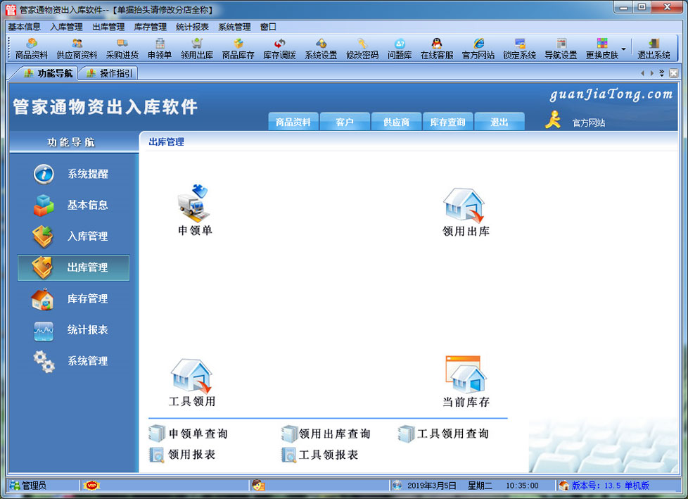 標(biāo)準(zhǔn)版主要功能為采購入庫,內(nèi)部領(lǐng)用出庫為主的庫存管理。 |